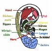 Eine Abbildung des Körpers wird auf die Ohrmuschel projiziert. Sie gleicht einem Foetus, wobei sich der Kopf unten, am Ohrläppchen, befindet, während die Hände und Füsse oben in der Ohrmuschel liegen.
